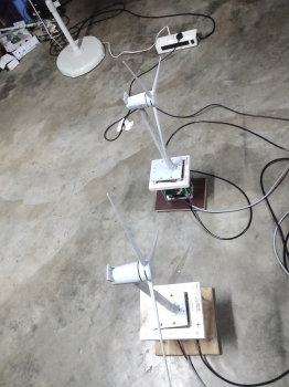 This table top 0.003 scale model miniature turbine mimics and simulates a giant offshore wind turbine, which has been designed to behave same patterns like speed or yawing etc, and can be digitally controlled!