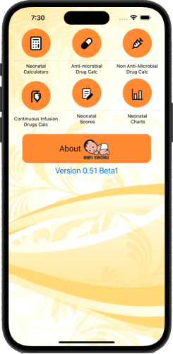 Main page with neatly organized buttons/ sub menus containing nearly 40-50 calculators , utilities, curated specially by NNFI for Neonatal practitioners