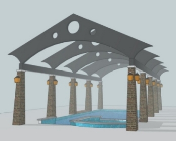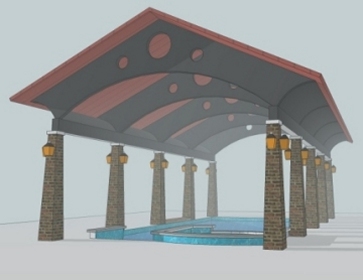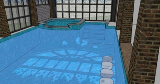 The swimming pool was completely 3d modelled to scale/size to the last detail of the color of the building, tiles to be used, metal fabrication work to be done for the light roof, glass walls etc and also including the filtration system.