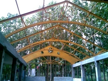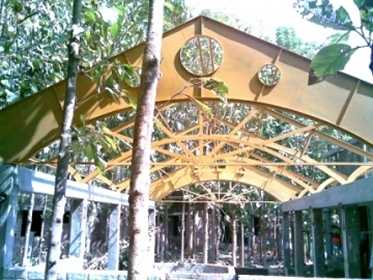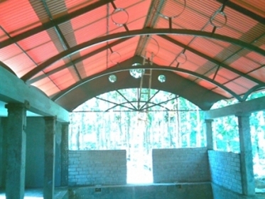 This novel Indoor swimming pool was built as a Low cost design, yet aesthetically appealing concept and to make its running also low cost, and environment friendly, it is fed with rain water harvested from the building next to it! A normal good monsoon, the pool can be filled fully!