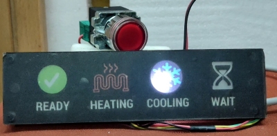 The system has a button for the user to start demo cycle and demonstrate Charles law and then cool the system, before allowing next demo button press to be honored. The exhibit also has a display of what state it is in currently. Only when the entire system is in "Ready" state, a button press will be honored.