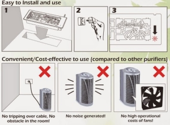 This product was developed in 2013 for US/Canada Market. Ion generator based air purifier for use in US/Canada homes that fit directly to the heating duct vents. No longer in production.