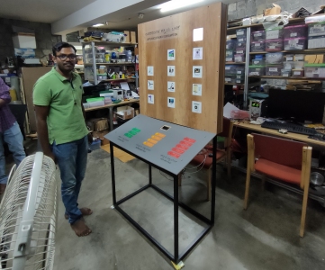 We developed Low cost kiosks for science exhibitions to provide interactive experience to visitors. The system involved illuminated panels, with an LCD and a button array below for user to press. Each of these kiosks have a different theme like Energy from Food, Energy consumed by common household appliances, Energy consumed by doing various activities.