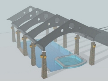 The swimming pool was completely 3d modelled to scale/size to the last detail of the color of the building, tiles to be used, metal fabrication work to be done for the light roof, glass walls etc and also including the filtration system.