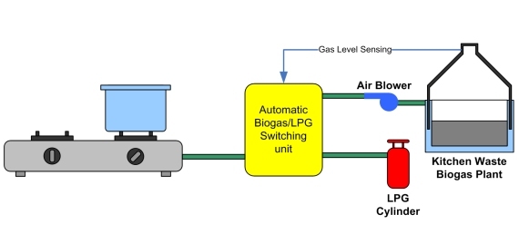 Biogas is generated at a relatively low pressure than the pressure of LPG in the kitchen cooking gas cylinders. Due to this separate stoves with different burner designs are used for both Biogas and LPG. However, the kitchen space is difficult to find for two stoves in most Indian kitchens, and so this POC by